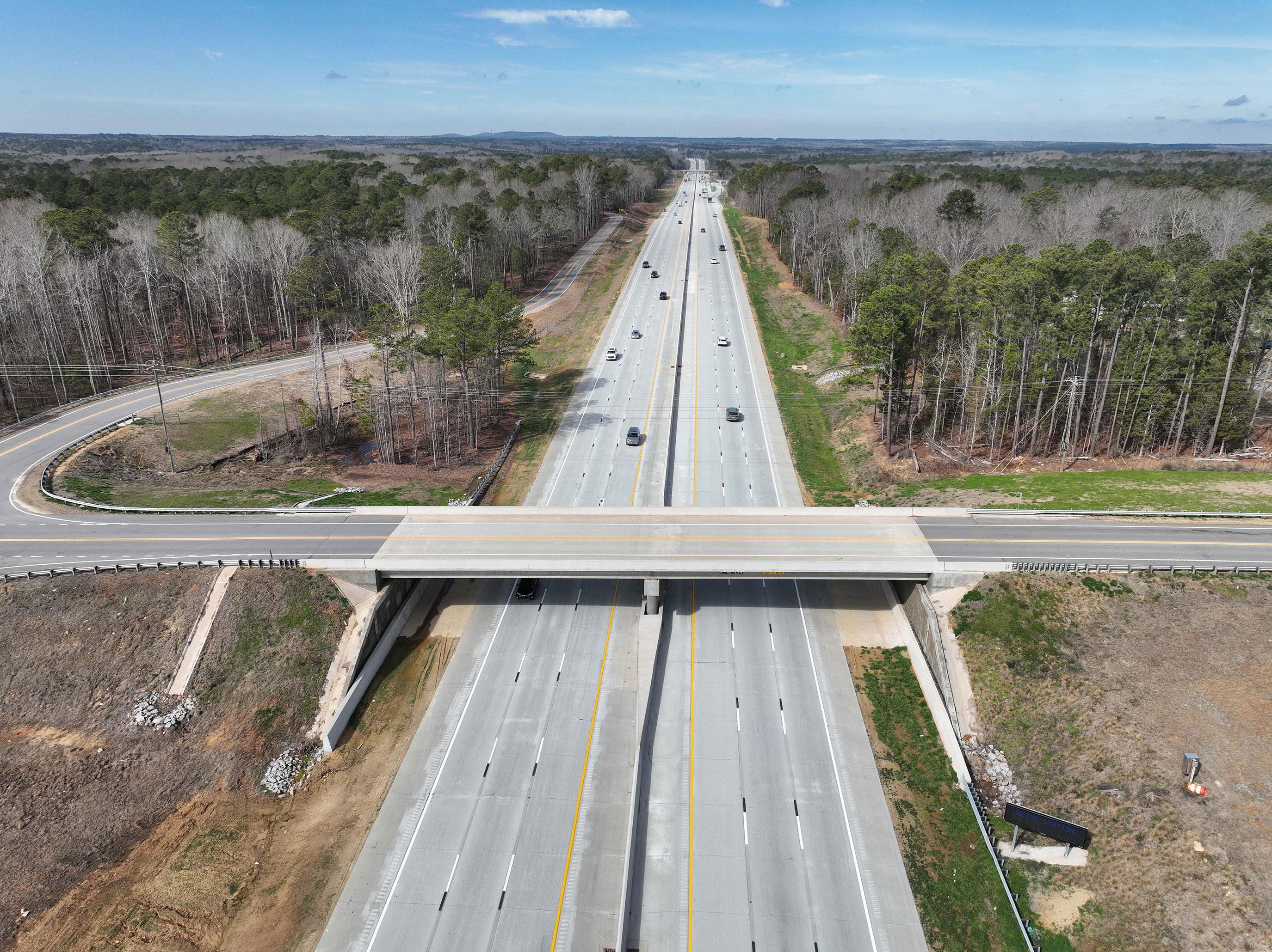 The Mount Vernon Church Road overpass crosses over 6 lanes of interstate traffic. Additional lanes were added to I-26 to increase capacity and reduce congestion.